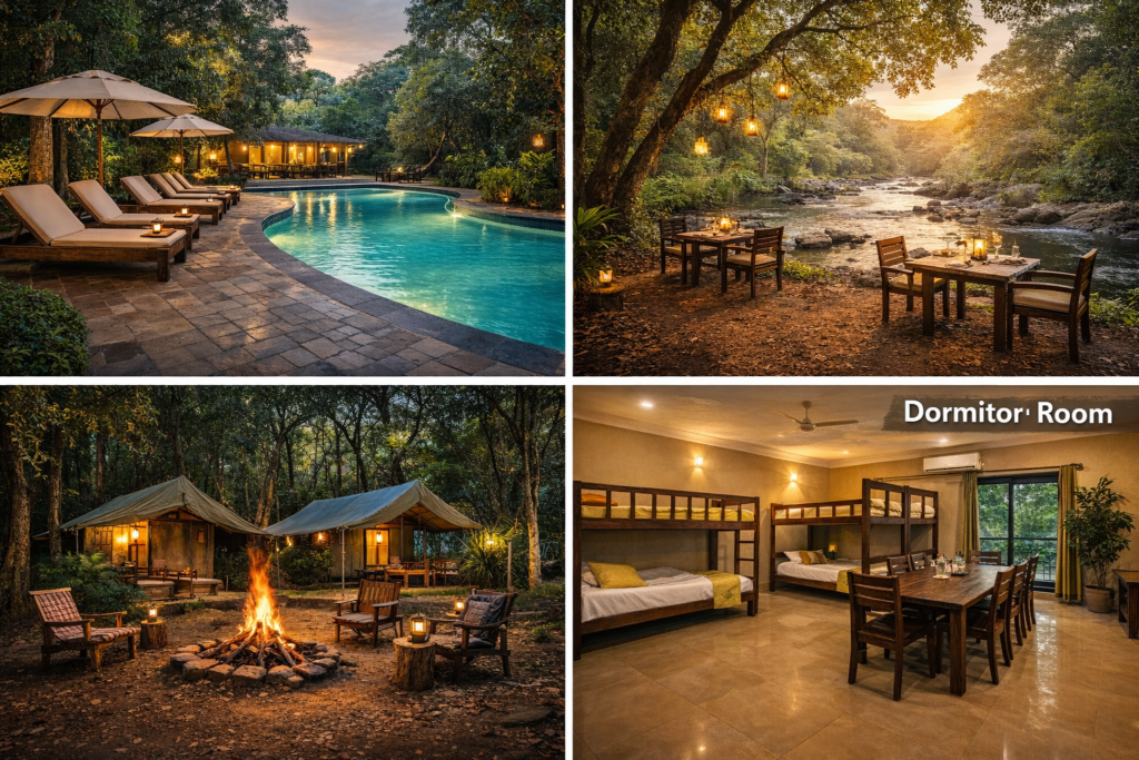 π² Scenic resort stays, homestays, tents & jungle lodges