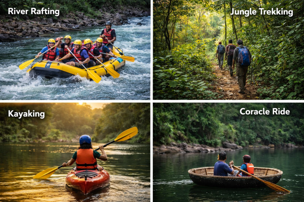 π£ββοΈ Thrilling adventure activities including river rafting, kayaking, coracle rides, jungle trekking, zip-lining, boating, nature walks, and more