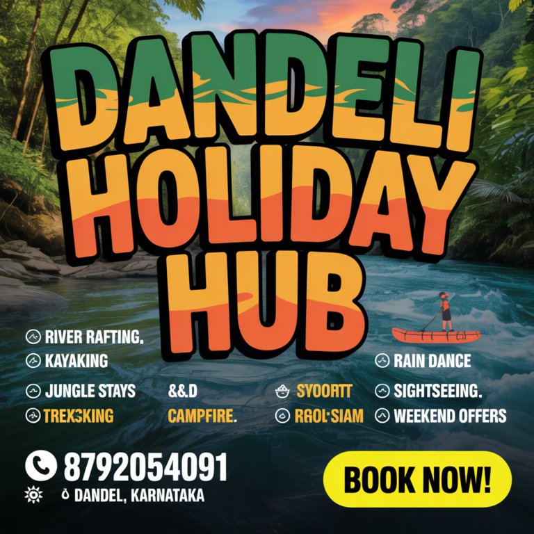 Dandeli Holiday Hub is a dedicated travel and tour services provider focused on curating unforgettable holidays in and around Dandeli β one of Karnatakaβs most loved adventure and nature destinations. We specialize in customized holiday packages, resort bookings, water sports, jungle excursions, sightseeing tours, and group travel experiences.